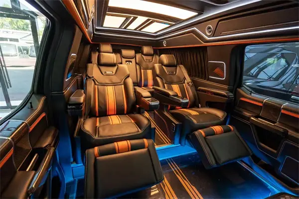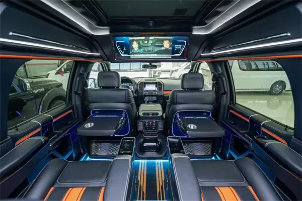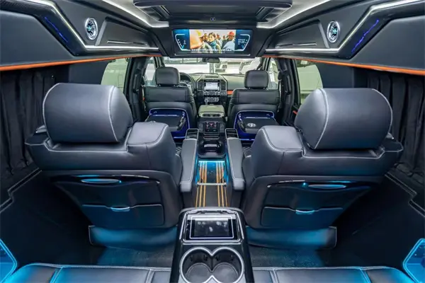2023款F-150高顶福特勇猛者是由进口的F150 LTD中规版为底盘改装的一款商务车,它承袭了F150超强动力,接实耐用的优点并且对其豪华性以及舒适性进行了大量提升。内部完全按照高端商务车的标准来打造。不仅有着硬派越野的超强动力,卓越的越野性能,霸气的体型,还拥有着高端商务车的豪华性,舒适性以及宽敞的内部空间。