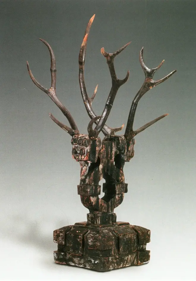 “镇墓兽"是我国古代墓葬中常见的一种怪兽,古代人们想象中的驱邪镇恶之神,人们将它塑造成狰狞凶恶的形象,有兽面、人面,鹿角,外形抽象,构思谲诡奇特,形象恐怖怪诞,具有强烈的神秘意味和浓厚的巫术神话色彩,下列三图均是春秋战国时期镇墓兽的代表。