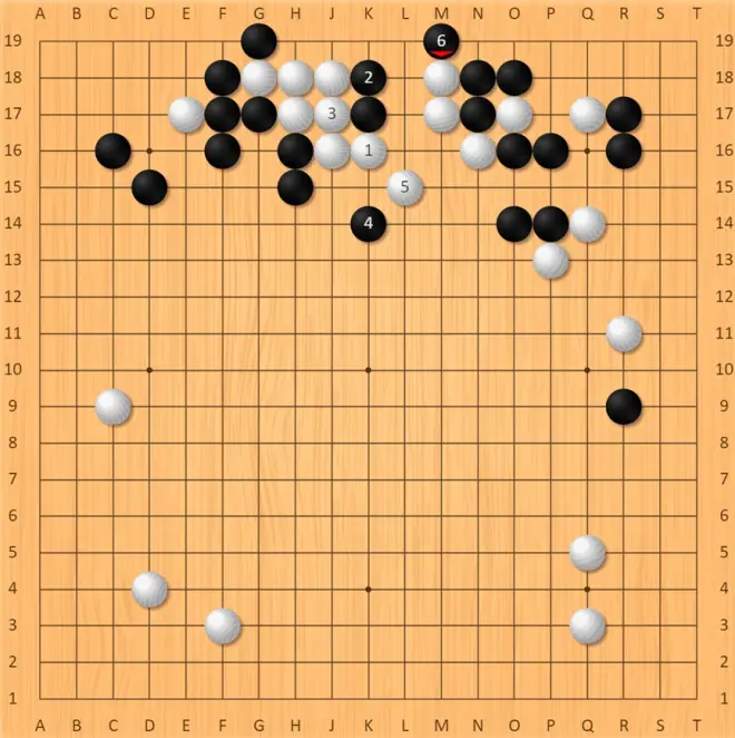 黑6搬的时候白棋已经无法在L19挡了,上方白棋彻底失去眼位,否则N16一子难保,白棋整块棋仍然没活。