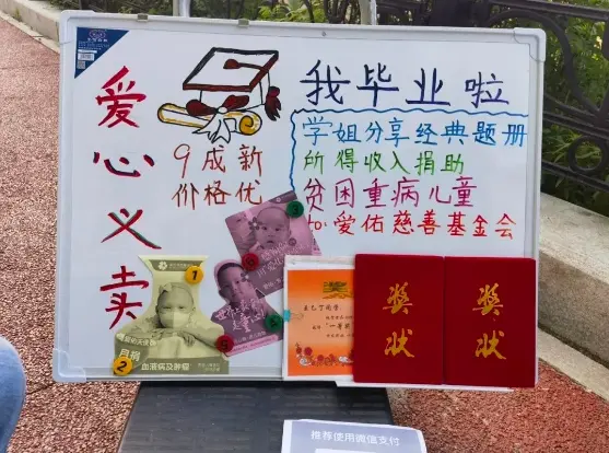 发信息的是一位帮女儿前来询问的母亲,她的女儿刚刚结束中考,准备将初中三年累积下来的学习资料进行爱心义卖,所有收益都捐给爱佑慈善基金会儿童医疗项目。