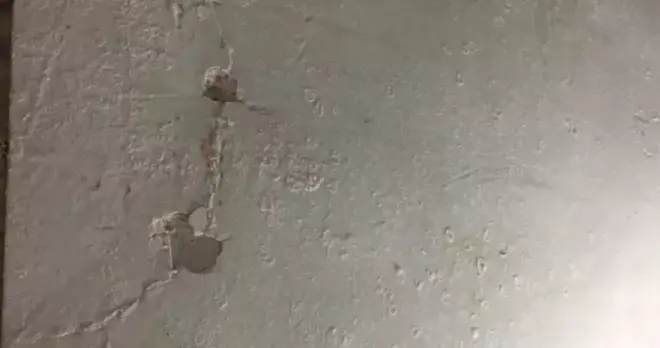 返潮返卤现象,会导致室内大面积使用玻镁板时,由于玻镁板受潮弯曲、老化、发脆,使墙体出现拱起下翘甚至脱落,更严重的情况会腐蚀金属基层,如下所示: