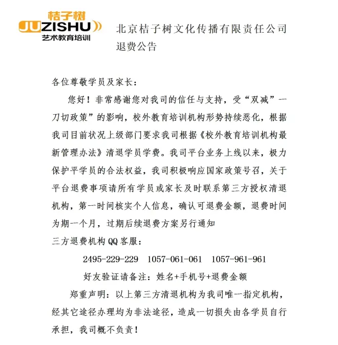 桔子树教育最新消息,桔子树教育退费咨询通道已经开启