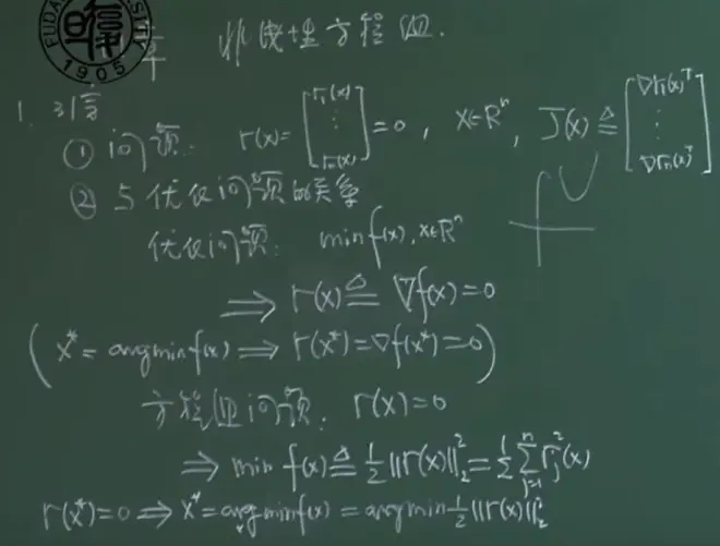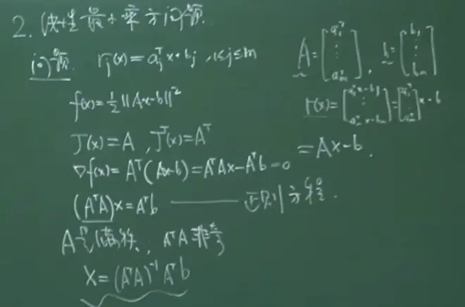 在求解问题②时,我们要找到x*,求f(x)的梯度可以得到问题①中的线性方程组,(不那么严谨的讲),零梯度为0可得x*。