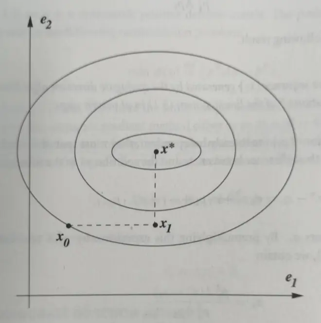 坐标下降法:遍历n个坐标方向e1,e2,......en,轮流在每个方向进行线搜索以获得新迭代。