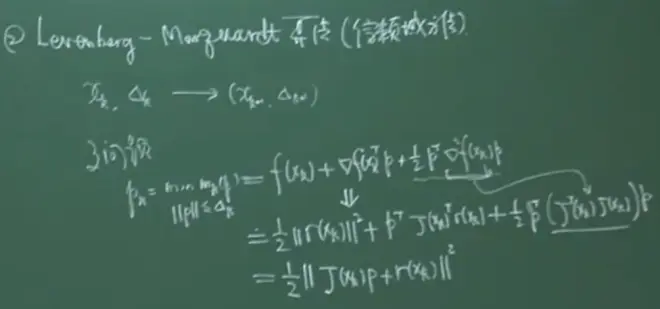 下图中的mk是f在xk的二阶泰勒展开,通过最小化mk求得p,用相应的p作为步迭代f。