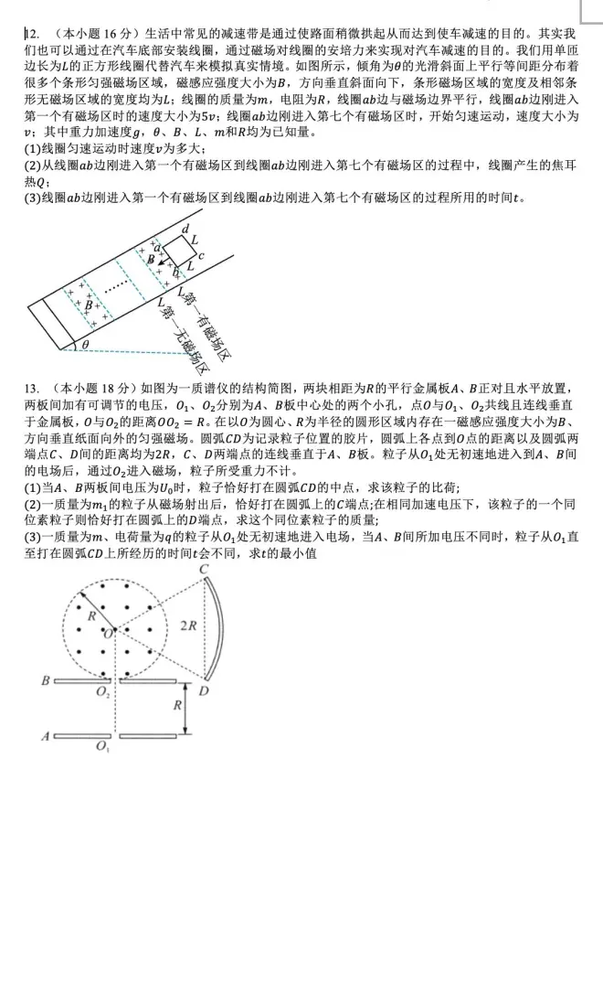 2023年天津市十二区重点学校高三毕业联考(二)物理试卷+答案