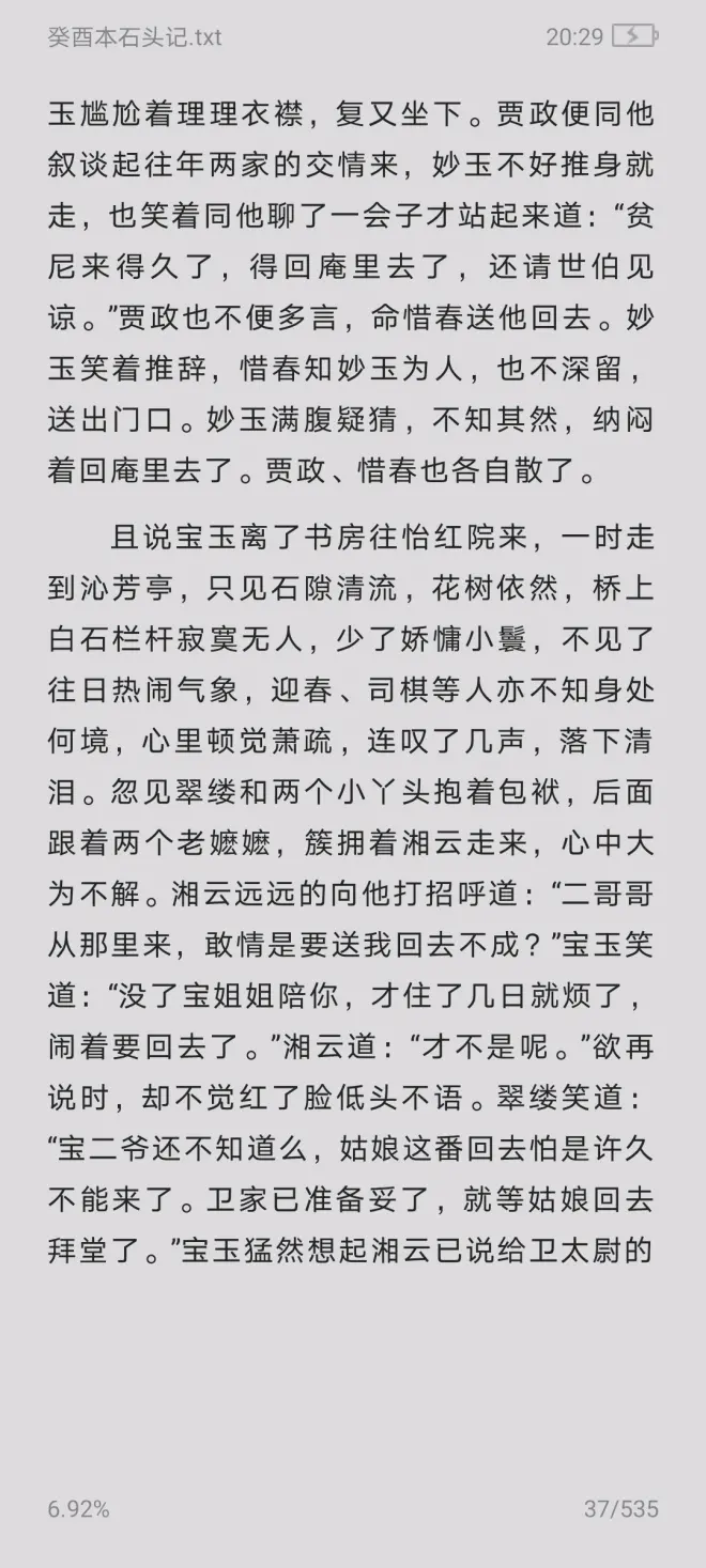 7.好么,到现在才公布,俩人才见面?前面干啥了?而且贾政一个老腐儒跑去见一个清净修行的年轻尼姑…这里真是怪怪的,《红楼梦》一书中可是明确写过女子得避开外男的(只有贾母说自己老了,太医问诊时不用隔幔子),更何况就算按鬼本所说妙玉祖上与贾家祖上认识,妙玉此时也是邀请来的客啊…