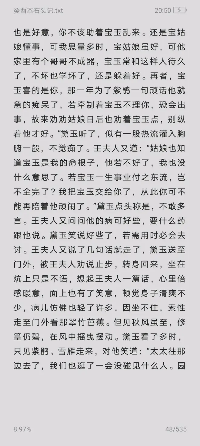 原著第8回:(黛玉)一面悄悄的咕哝说:“别理那老货!咱们只管乐咱们的。”