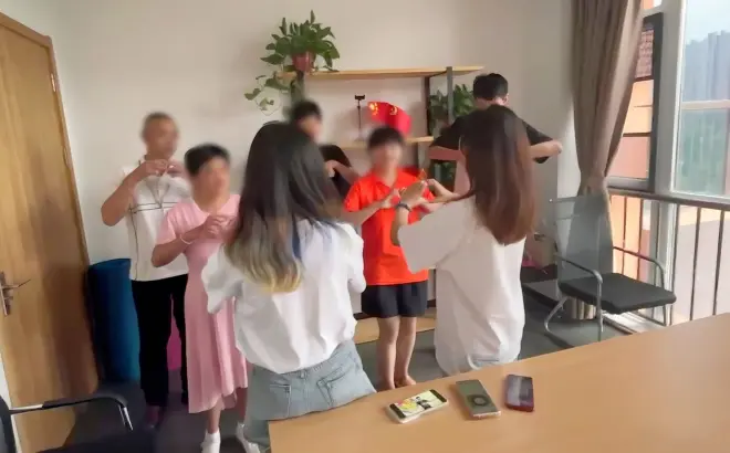 志愿者们在教授单片机游戏