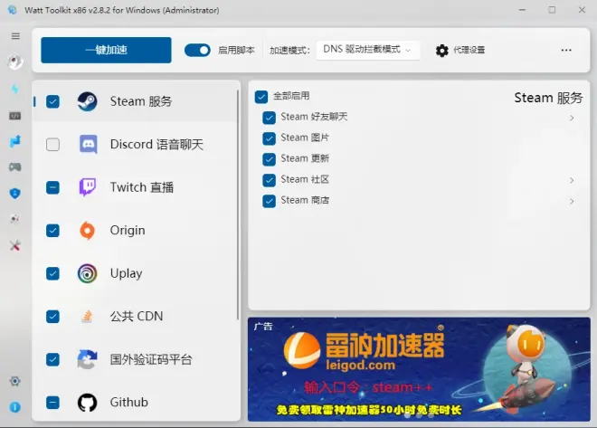 原名Steam++,拥有网络加速,脚本配置,账号切换,库存管理,本地令牌,自动挂卡和游戏工具等功能满足steam和多数网站的使用与访问。微软商店也有。