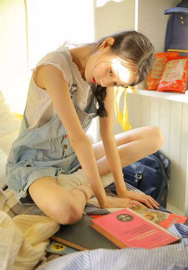 今日唯美摄影美图推荐23:牛仔背带裙女孩居家写真