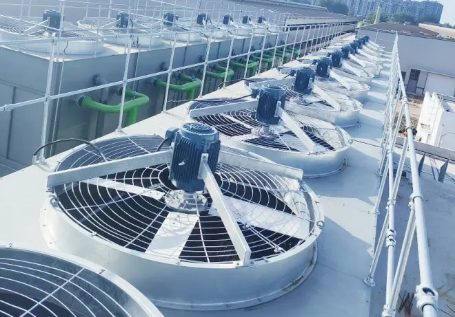 密闭式冷却塔是一种用于工业生产和商业建筑中的设备,其主要功能是将高温的液体或者气体通过塔内的盘管,利用喷淋水、填料和风机与空气进行传热,从而将热量散发到空气中,使介质得以冷却。