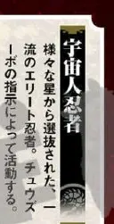 位于图西星团南部,从科隆行星来的宇宙忍者。 试图在人的脖子上寄生与自己的分身蝉的幼虫相似的小型生物,吸收其能量。 因为寄生的分身会爆发性地繁殖,所以也被称为“繁殖忍者”。 寿命很短,在作战成功之前就死了。 就这样分身也消失了。