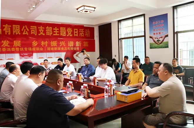 新源食品总经理李节路在座谈会上表示,娄底市邵阳商会党委与新源食品党支部联合开展建党102周年党日主题活动,其目的是消费帮扶新源食品。随后详细介绍新源食品生产线及产品特点、经营理念,同时也希望与各位企业家开展更多的合作,最后预祝主题党日活动圆满举办。