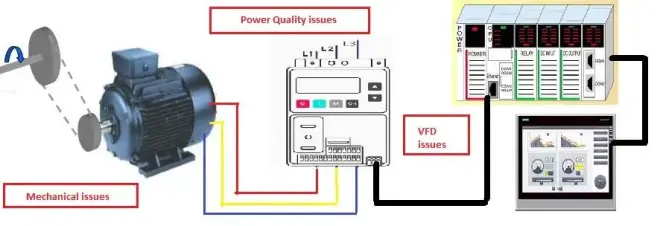 电能质量问题:瞬变电压、电压不平衡或谐波失真是影响电机电能质量的主要问题。有问题的电缆也会导致电机故障。机械问题:电机的机械故障是由未对齐、润滑不当、轴承磨损或轴松动或不平衡引起的。变频驱动问题:当电机在这一区域显示故障迹象时,问题通常归结为 Sigma 电流、过载或驱动输出的反射。在 工业中,VFD 通常由控制器控制。控制器 (PLC/HMI) 中的任何错误(硬件/软件问题或电源故障)或 VFD 与控 制器之间的通信故障也会影响电机的性能。