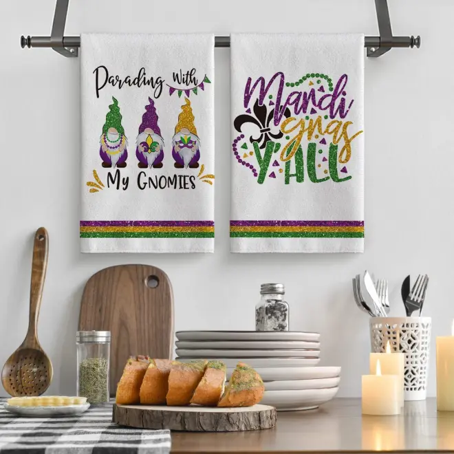 “Mardi Gras狂欢节”以紫、绿、金为主题色,辅以串珠、面具、卡车、鳄鱼、龙虾、帽子为主要素材。