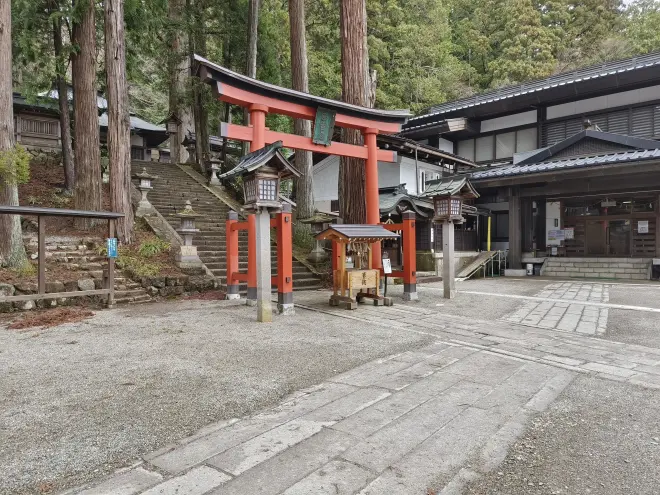接着通过和合桥到了河对岸,向北折返回去,折木的家在高山阵屋之前(当然房子是没有的),旁边还有一座一本杉白山神社。