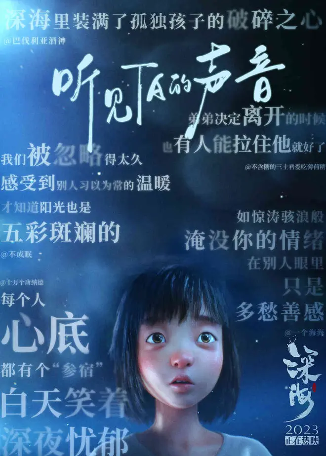 十分感谢看到这里的你,相信你一定从《深海》里感受到支持,可能隐藏在心底的伤痛被搬到银幕,被看见,被理解,被接纳,或许可以从《深海》里感受到温暖、治愈,甚至是救赎吧。