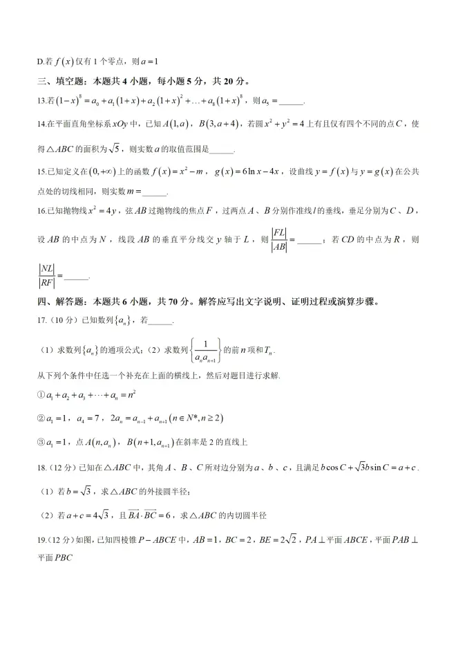 » 湖北省十一校2022-2023学年高三下学期3月第二次联考数学试题(含答案)