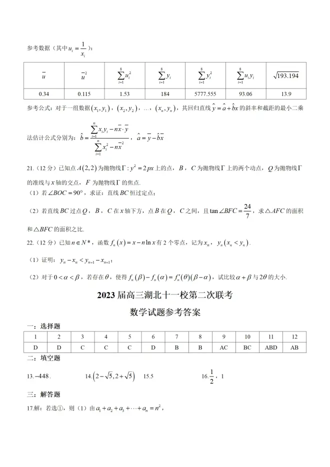 湖北省十一校2022-2023学年高三下学期3月第二次联考数学试题(含答案)的评论 (共