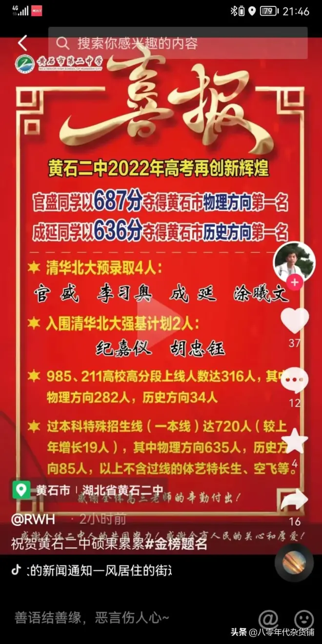 3、阳新虽然在2019年摘掉了国家贫困县帽子,然而还是能享受高考录取的国家专项计划。整体表现不错,理科高分甚至超过大冶一中(清北有望),可喜可贺!