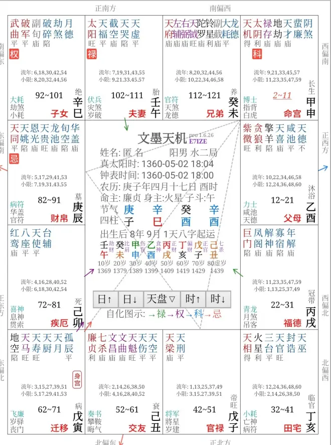 禄存坐命,加强了机月同梁格局的气势,太阴化科,主名扬四海,永乐年间明朝边境往西南、东北方向大幅扩张,疆土稳固,郑和下西洋等伟绩就不必言了。
