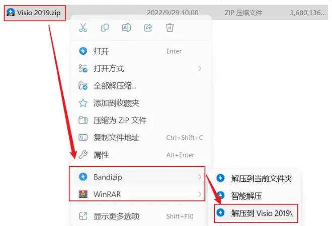 1:选中安装包鼠标右键解压到“Visio 2019”