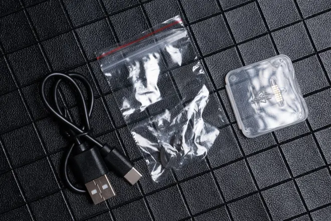 在外包装上,sanag 塞那T81S PRO采用了sanag塞那的一贯风格,深蓝色的包装盒,盒子中央是品牌logo字样。耳机的配件还是挺全的,一份说明书,一份保修卡,一张VIP卡,一对备用耳帽,一根黑色TYPE-C接口数据线,一张64G的内存卡,一个仓盒,两只耳机。