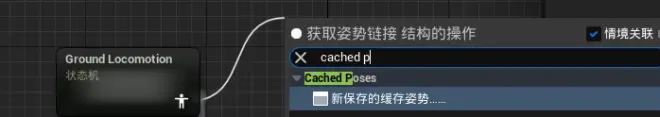 从GroundLocomotion引出cached poses,创建一个状态缓存,命名为GroundLocomotion