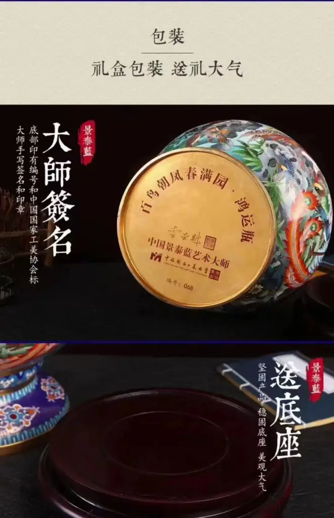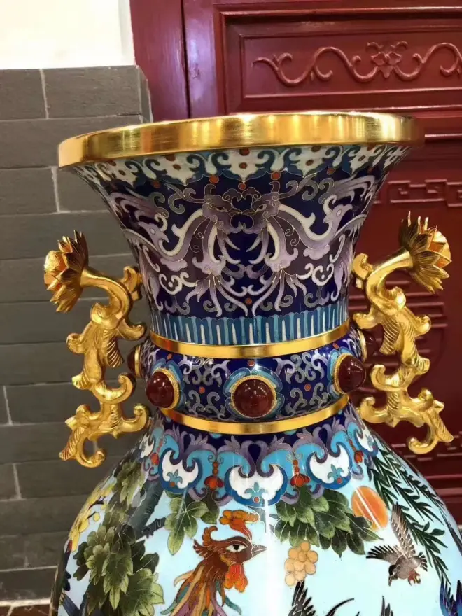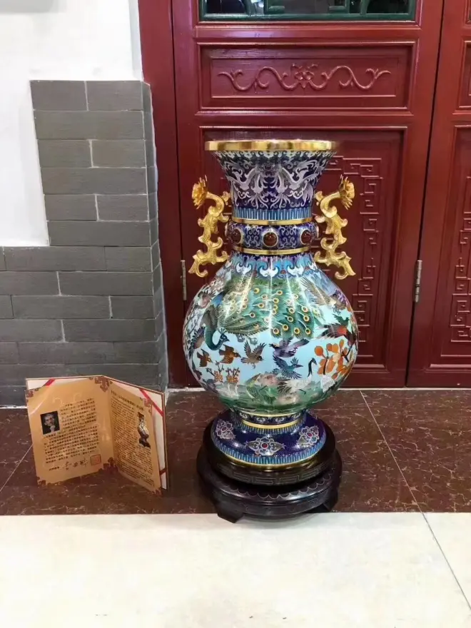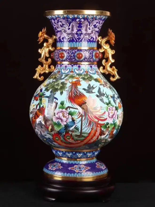 景泰蓝工美大师李荣魁先生巨作百鸟朝凤春满园·鸿运瓶