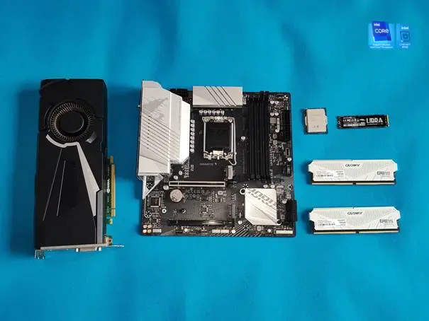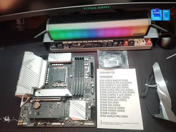 技嘉B760M小雕WIFI主板虽然是黑色基板,但是由于大面积的银白色散热马甲覆盖因此不论是黑色风格还是风格的整机都没有问题,只要与散热风扇的颜色一致就可以搭配不同颜色的机箱。将各个组件接上主板,连接风扇和电源,没有装入机箱的原因主要是担心哪里出现问题拆机麻烦,不过这次没有让我失望,短接开机,一次点亮。