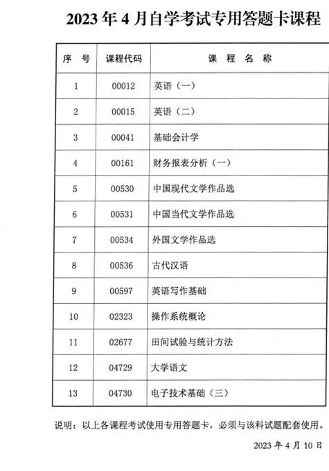 04.【陕西】23年4月自考传统卷课程、专用答题卡课程信息