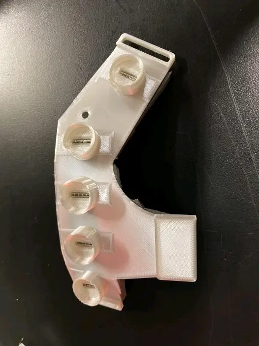 打印时另一只需做镜像处理,同时建议调整好精度与支撑,有些地方支撑很难拆,这个零件要求柔性,目前我已尝试可用的PLA,尼龙,黑色树脂。