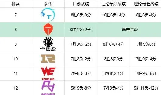 目前TT、WE、iG、RNG、RA五支队伍争夺三季后赛名额,而TT已经达到8胜,出线形势较为简单,暂不分析。
