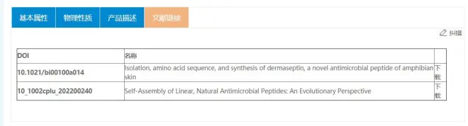Dermaseptin是从青蛙皮肤分离的多肽,对细菌,真菌和原生动物表现出有效的抗菌 (antimicrobial) 活性。抗菌肽Dermaseptin是生物界中广泛存在的一类生物活性肽,是蛙类生物机体先天性免疫的重要防御成分,属于抗菌肽系列中的一种。抗菌肽Dermaseptin由34个氨基酸组成,多肽结构并不稳定,肽序C端的Gln容易发生降解,从而导致多肽结构发生变化。