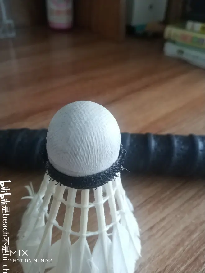 我在球拍尾部和羽毛球球体上添加了魔术贴,以达到快速捡球的效果