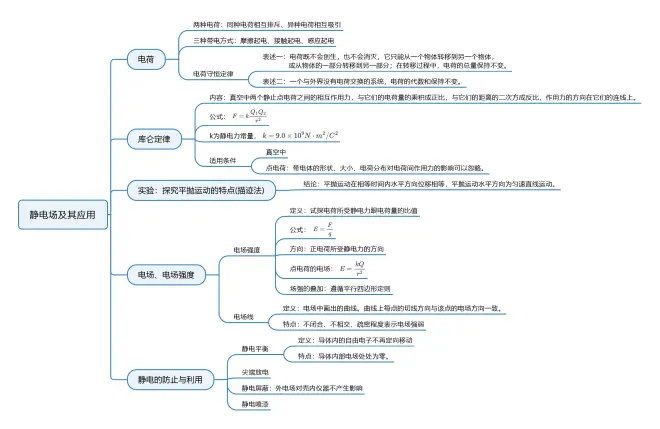 1.电荷;2.库伦定律;3.电场、电场强度;4.静电的防止与利用
