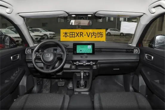 本田XR-V内饰有后发设计的优势,分层台面和悬浮导航车机屏幕看起来确实年轻一些,不过相对粗糙的纺织面料座椅和大量黑色硬塑料装饰面板显得廉价。