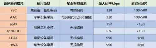 SBC:最基础、最常见的蓝牙编码格式,所有设备都支持此格式。