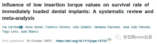 文章B:低插入扭矩值对即刻种植体存留率的影响:一项系统综述和荟萃分析