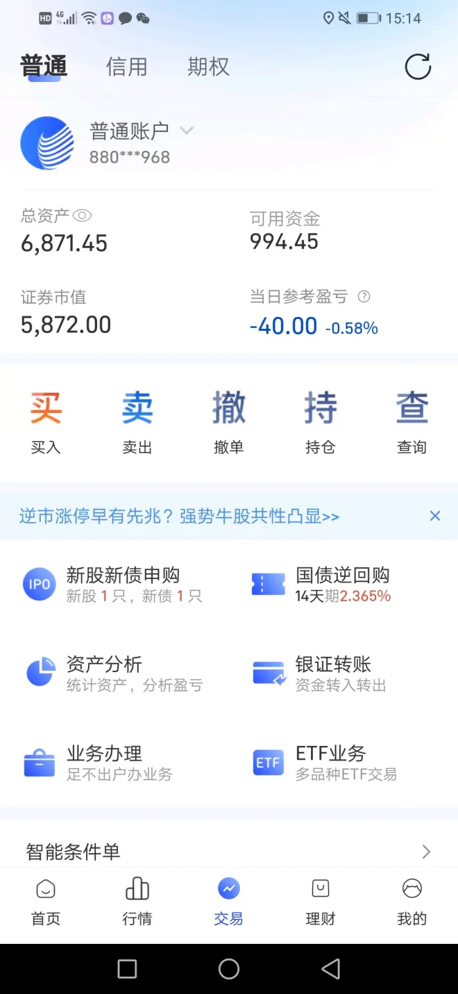 2023年2月15日,今天是我5000元实盘挑战炒股的第13天,亏损-0.58%。今天有所回调,大盘下跌了-0.39%,我微微回调-0.58%,总体来说比较稳健,今天的大港股份和天音控股有点亏,上午都把它选出来。眼睁睁的看着这两个涨停,心里真有点后悔。总结起来还是由于自己胆子小了,以稳健为主,不肯冒险,下次遇到了一定要胆大一点。继续加油吧!