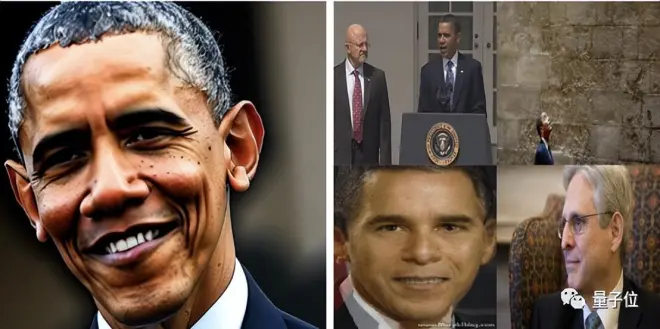 举个例子,左图是用Stable Diffusion生成的一张“奥巴马的照片”,这张照片和右图任何一张特定训练图像都不神似,因此这个图像不能算作根据记忆生成。