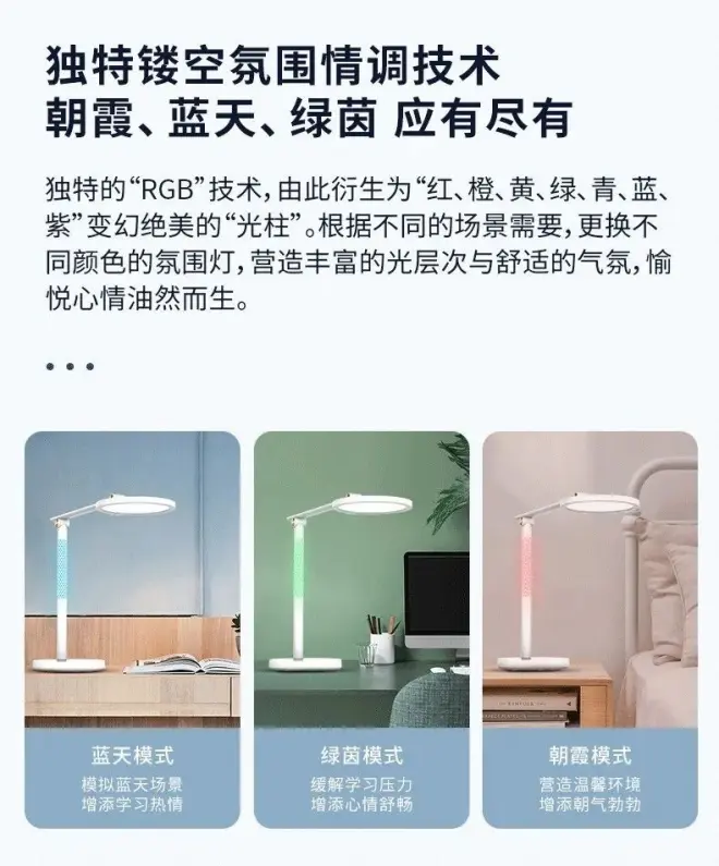天棒LA-T813和天柱LA-B638/B688在功能配置上不仅有多种色温模式、无级调光之外,还增加情调氛围灯RGB如梦如幻,让孩子在学习的同时,也能感受创新科技的光彩魅力。