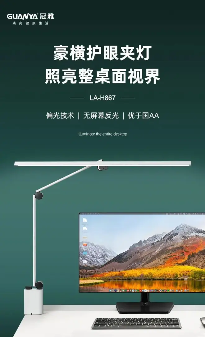冠雅屏幕读写护眼灯分为LA-H867/C398夹式台灯和LA-C338/D811座式台灯,依据用户自己的工作和学习的实际需求,自由选择。