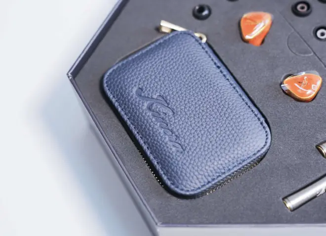 第一次将这款HIFI耳机拿在手中,不禁为这款耳机的材质以及产品本身的质感所感动,外包装使用了一个六边形盒子,仿佛里面装着的不是一件耳机,而是一件艺术品,盒子中附赠了4副功能不同的硅胶套,含5对Final E套件,另外还有一件Kinera的大容量定制收纳包