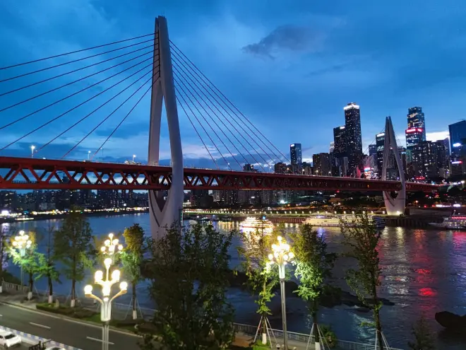 吃过晚饭,从小什字站坐轨道6号线回酒店准备拍江景。等夜幕降临,城市变得灯火辉煌,高楼林立,熠熠生辉,我在酒店的江景露台上,欣赏这绝美夜景。