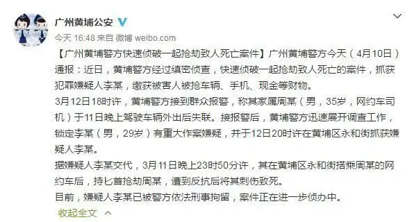 去年4月,广州一名网约车司机被乘客劫车,并且残忍的杀害,颈部、胸部多处被锐器伤害,致失血性休克合并引起血液吸入性窒息死亡。犯罪嫌疑人还用司机的指纹解锁周他的手机,用借贷软件贷出4000余元,并抢走司机身上现金100余元。