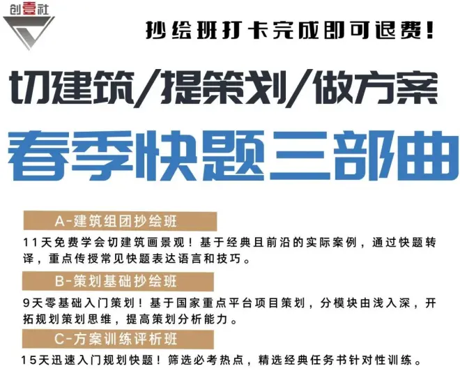 免费春季快题班全国招生!切建筑/提策划/做方案!大院主创和状元带你学!