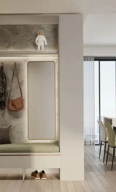 ☞集收纳区、展示、整理仪表、挂衣、换鞋等多功能于一体,舒适便捷;