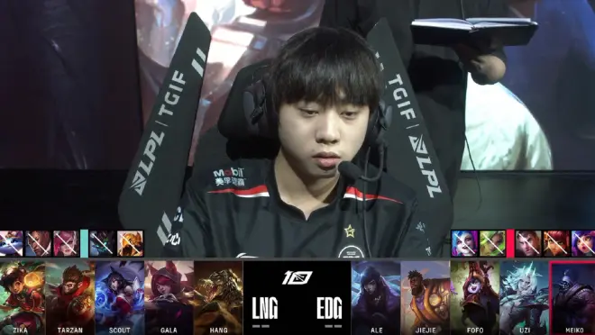 今天6月17号英雄联盟EDG战队对抗LNG战队,Uzi迎来复出后第二场比赛!上次EDG赢IG基本全靠Uzi在狂C,朱开教练采访透露队员为乌兹的入队做出战术牺牲,队伍仍需要时间磨合调整。而GALA曾被视为乌兹接班人,Uzi直播时没少吹他,Scout面对老东家的恩怨局也是看点十足,让我们看看第一场比赛的双方阵容!